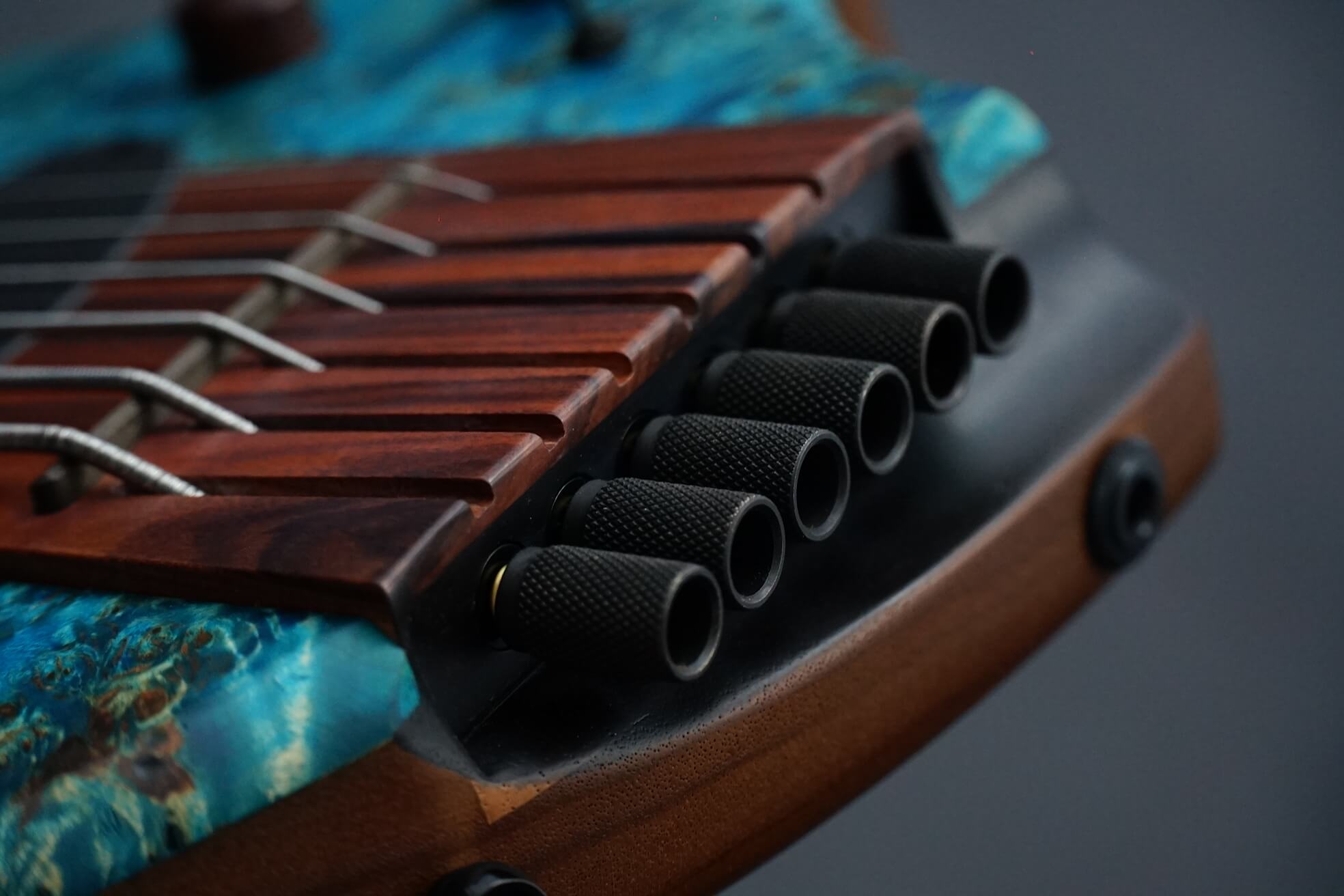 The Delano Xtender, paired with the Stradi piezo system, opens up an expansive palette of tones, from deep, thunderous lows to bright, articulate highs. The original tuner concept, cleverly integrated into the neck structure, reduces weight and enhances the organic flow of the design. A truly unique instrument, built to inspire both visually and sonically.