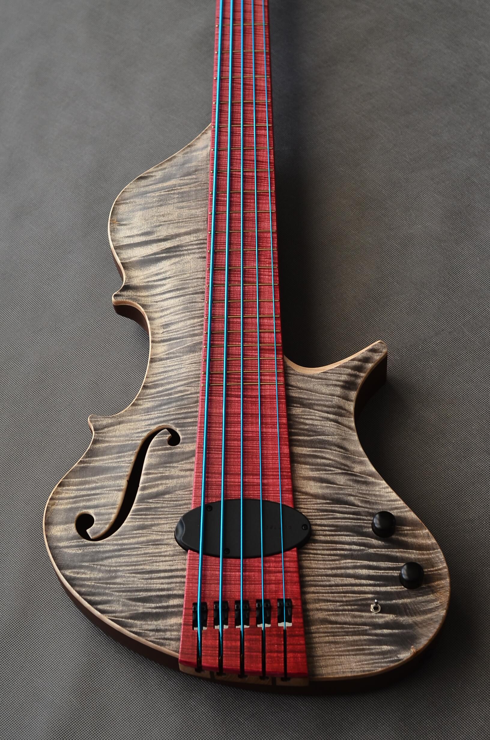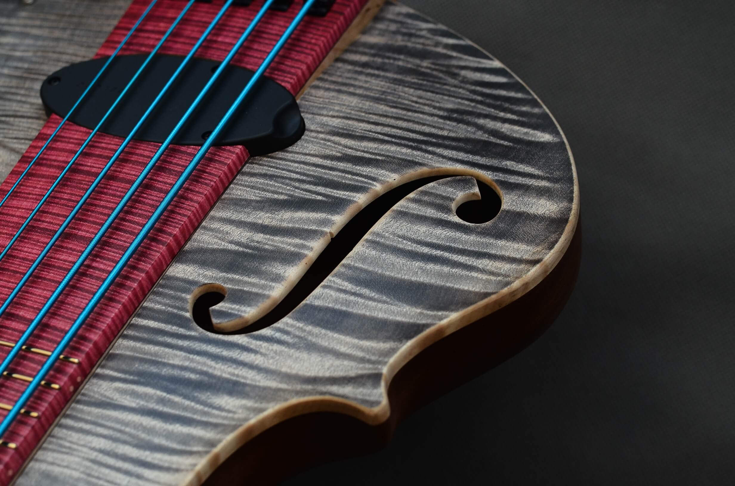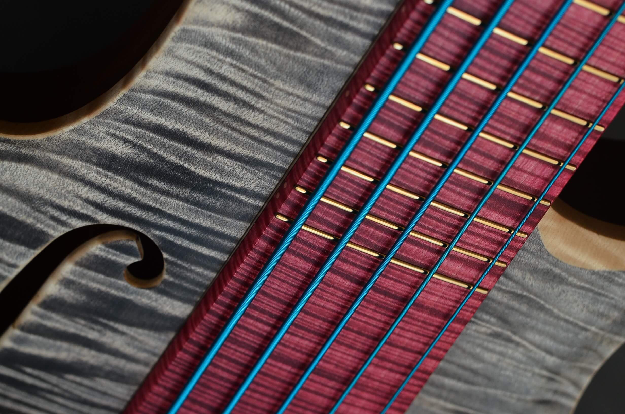 The neck, designed for precision and durability, combines a quartersawn oak core with figured birch sides, reinforced with carbon fiber tubes for uncompromising stability. Deep chambering lends the bass its rich overtones, while retaining exceptional sustain and dynamic range. A harmonious union of form, function, and passion—crafted for true connoisseurs.